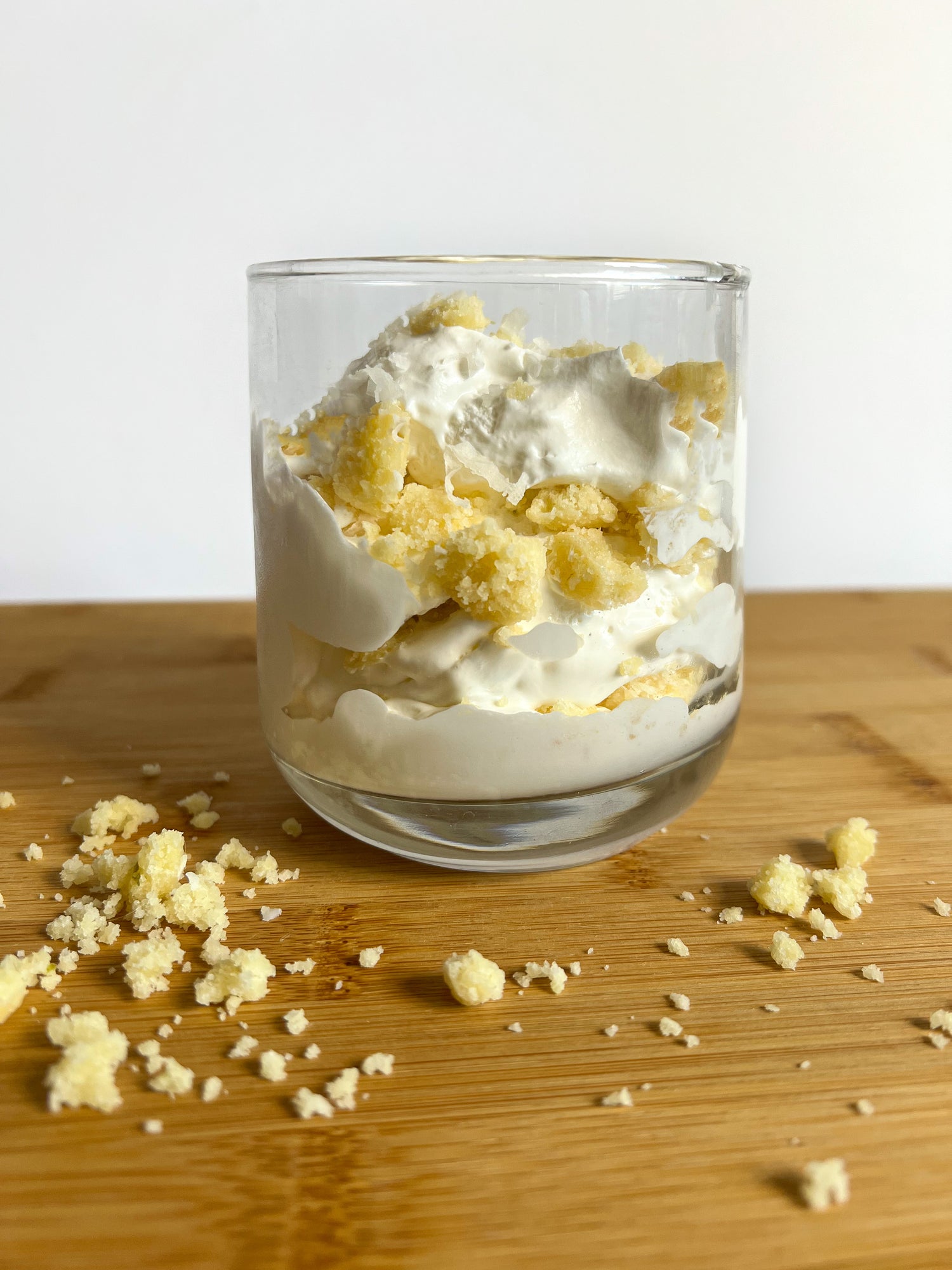 - Repeat the layers until you reach the top of the jar, finishing with a layer of berries, cookie crumbles and coconut flakes on top.