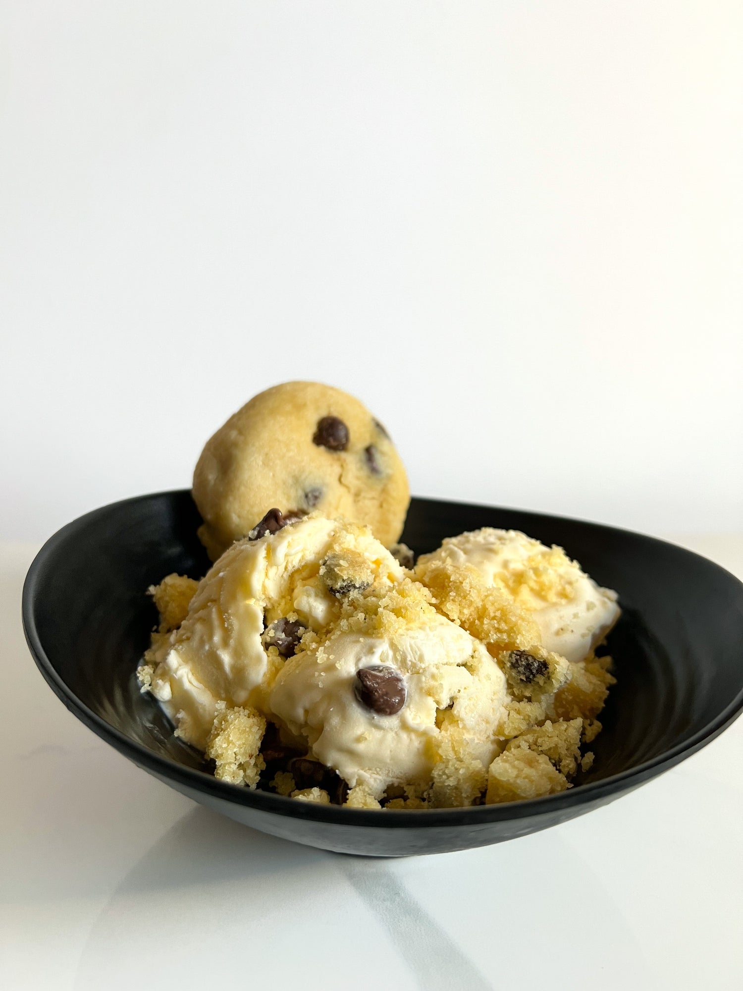 - When ready to serve, scoop the keto cookie crumble ice cream into bowls or cones and add any desired toppings such as whipped cream, chopped nuts, or chocolate chips.
